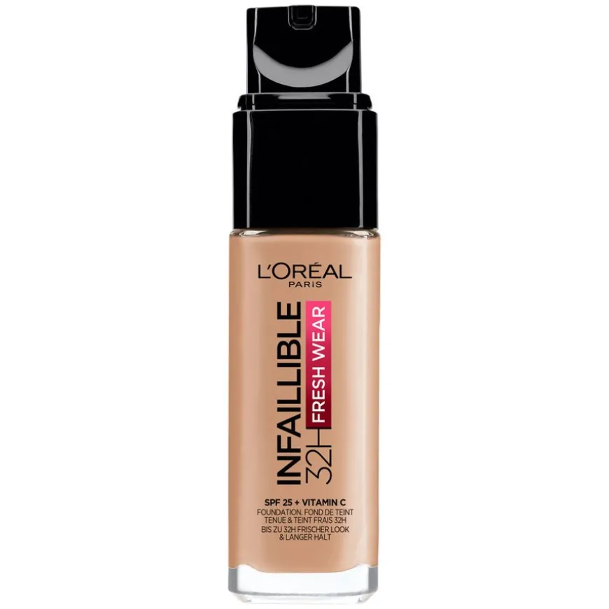 L’Oréal Paris Infaillible 32H Fresh Wear Foundation med SPF25 føles lett på huden og gir den en fresh look i 32 timer* uten at fargen endrer seg i løpet av dagen.