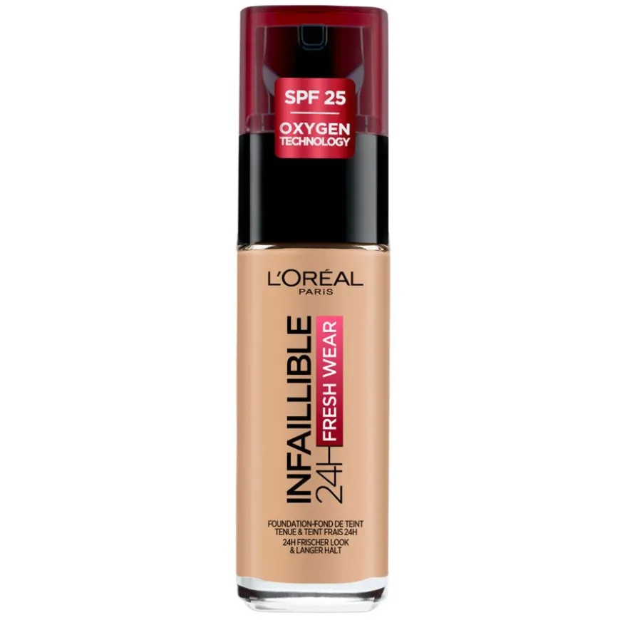 L’Oréal Paris Infaillible 32H Fresh Wear Foundation med SPF25 føles lett på huden og gir den en fresh look i 32 timer* uten at fargen endrer seg i løpet av dagen.