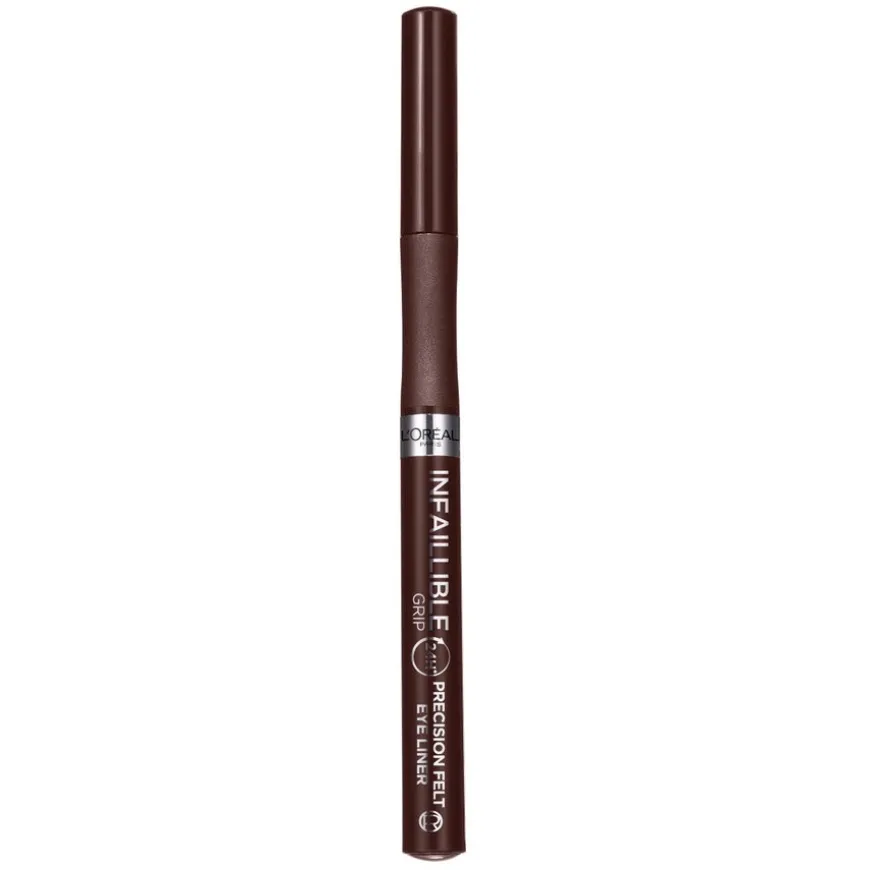 L’Oréal Paris Infaillible Grip 24H Precision Felt eyeliner har en 0,4 mm* tynn filttupp for presise linjer med opptil 24 timers** hold. Vannfast formel – smitter ikke av. Godt grep nær tuppen gir deg stødig kontroll og gjør det enkelt å påføre eyelineren.
