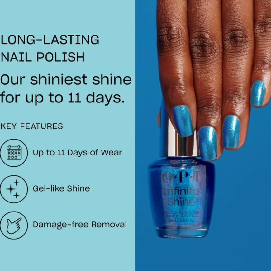 Locks like gel, unlocks like lacquer. OPI introduserer Infinite Shines nye banebrytende formel med en forhåndsherdet gelteknologi som gir glans, dekning og langvarig holdbarhet i opptil 11 dager. Den gellignende formelen omslutter neglene for en glatt og jevn dekning uten striper eller bobler, og fjernes enkelt med aceton for rask og skadefri fjerning. Den er så bra at man tror at det er gel. Infinite Shine er alt du elsker med gel og alt du elsker med lakk.