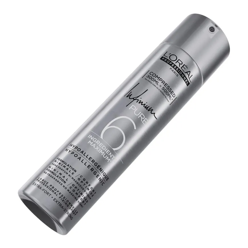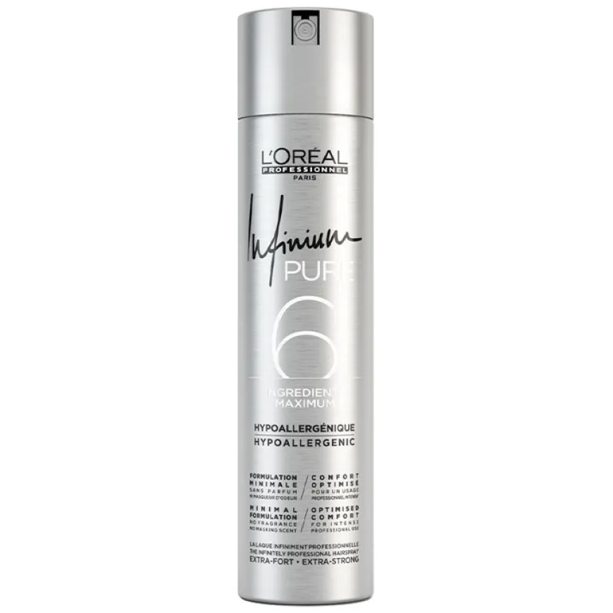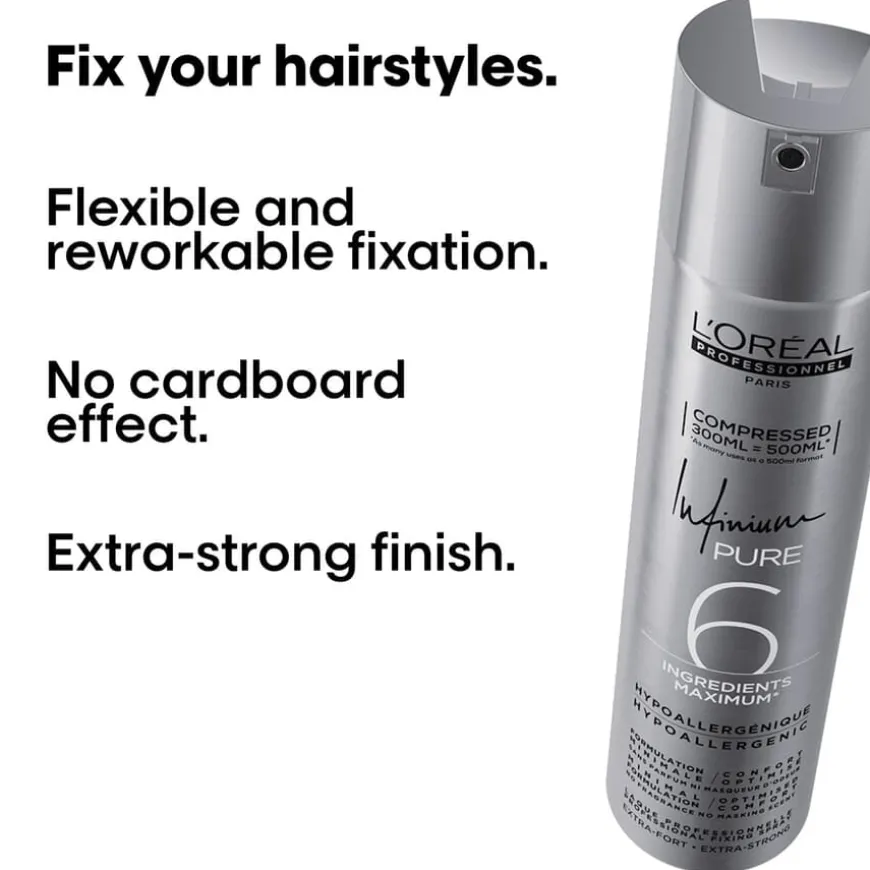 L’Oréal Professionnel Infinium Extra Strong er en salongseksklusiv hårspray, et sant backstage-ikon. Ekstrem støtte. Ny formula: uten parfyme, ingen maskerende duft: Nøytral duft ved påføring, etterlater ingen duft i salongen eller i håret*. Optimal komfort for intens profesjonell bruk backstage eller på salong: optimal for sensitive luftveier, ingen hoste, ingen kløe, ingen bitter smak*. Gir umiddelbar støtte uten at håret føles stivt, ultra-tørr, gir et glansfullt resultat. *testet på 30 respondenter.