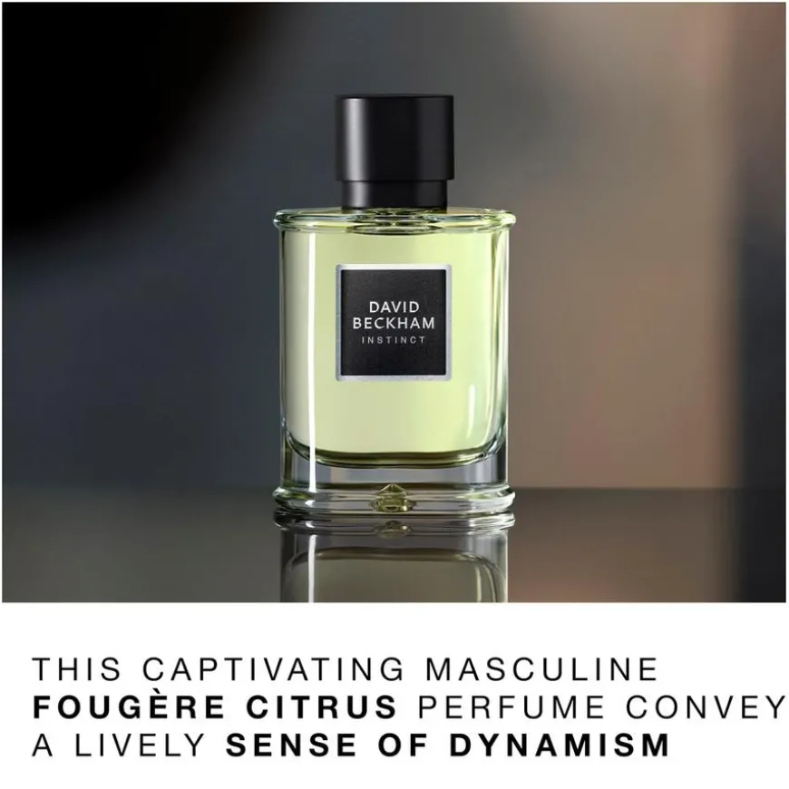 David Beckham Fragrances presenterer Instinct, en slagkraftig og langvarig Eau de Parfum for den energiske mannen som tør å lytte til sin intuisjon. Parfymen formidler en livlig følelse av dynamikk, denne fengslende maskuline fougère-sitrusduften er inspirert av Davids autentiske og karismatiske personlighet.Med sine rene linjer, tunge sorte kork og sofistikerte svart-sølv etikett, utstråler Instinct-parfymeflasken en nedtonet eleganse.