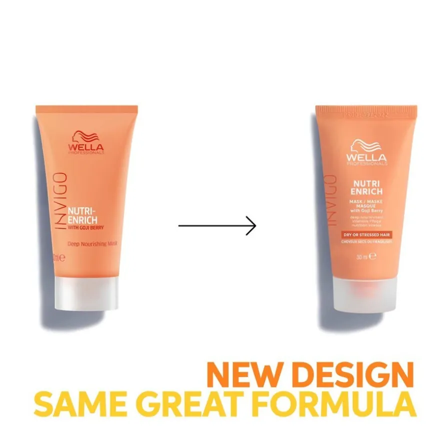 Wella Professionals Invigo Nutri Enrich Mask for fint hår er en dypt nærende og fuktighetsgivende hårkur spesielt utviklet for å behandle tørt og skadet hår. Denne profesjonelle hårkuren gir stresset hår fuktighet i dybden og garanterer et glatt hår fullt av vitalitet. Masken inneholder Nutri-Enrich-Blend™, oleinsyre og panthenol som gir håret umiddelbar fuktighet og næring. Nutri Enrich Mask er også fullpakket med Goji Berry, en ingrediens som er kjent for å være ekstremt rik på vitaminer, mineraler og peptider.