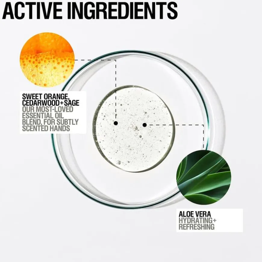 Water/Aqua/Eau, Pentylene Glycol, Coco-Glucoside, Sodium Lauroyl Sarcosinate, Cellulose Gum, Caprylyl/Capryl Glucoside, 1,2-Hexanediol, Sodium Benzoate, Cocamidopropylamine Oxide, Algin, Citric Acid, Sodium Gluconate, Potassium Sorbate, Eucalyptus Globulus Leaf Oil, Rosmarinus Officinalis (Rosemary) Leaf Oil, Cedrus Atlantica Bark Oil, Glyceryl Oleate, Juniperus Virginiana Oil, Citrus Aurantium Dulcis (Orange) Peel Extract, Salvia Sclarea (Clary) Oil, Aloe Barbadensis Leaf Juice, Cymbopogon Martini Oil, Foeniculum Vulgare (Fennel) Oil, Pelargonium Graveolens Flower Oil, Citrus Aurantium Dulcis (Orange) Oil, Tocopherol, Hydrogenated Palm Glycerides Citrate, Limonene, Linalool
