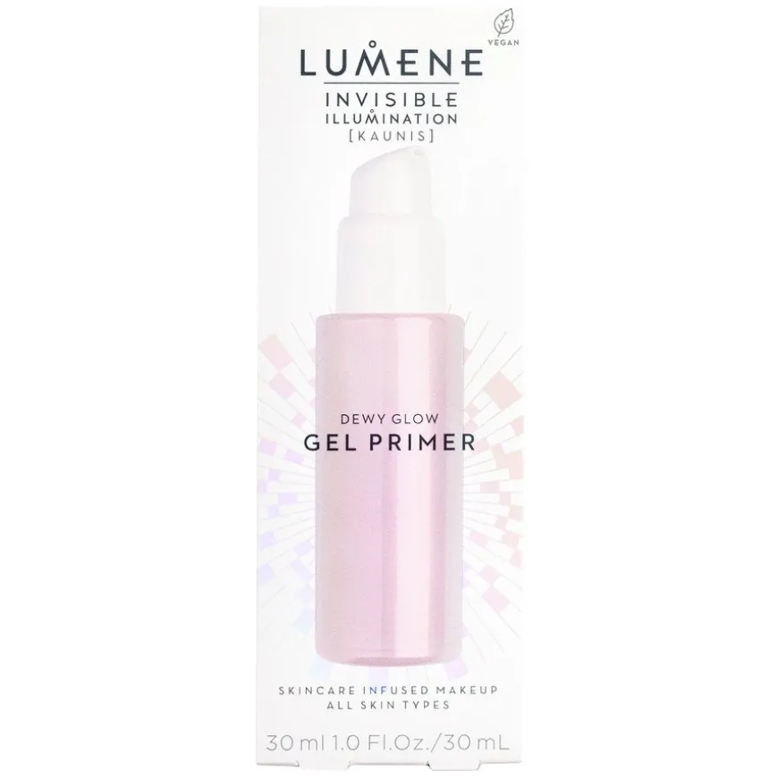 Lumene Invisible Illumination Dewy Glow Primer byr på «plumpende» fuktighet og en dewy, ung glød! En primer som jevner ut og lysner huden for en sunn glød og strålende underlag til sminken. Arktisk kildevann og nordiske alger gir et umiddelbart fuktighetsboost, mens nordisk willowherb lysner huden. Perfekt for normal til tørr hud. Transparent gel-konsistens.