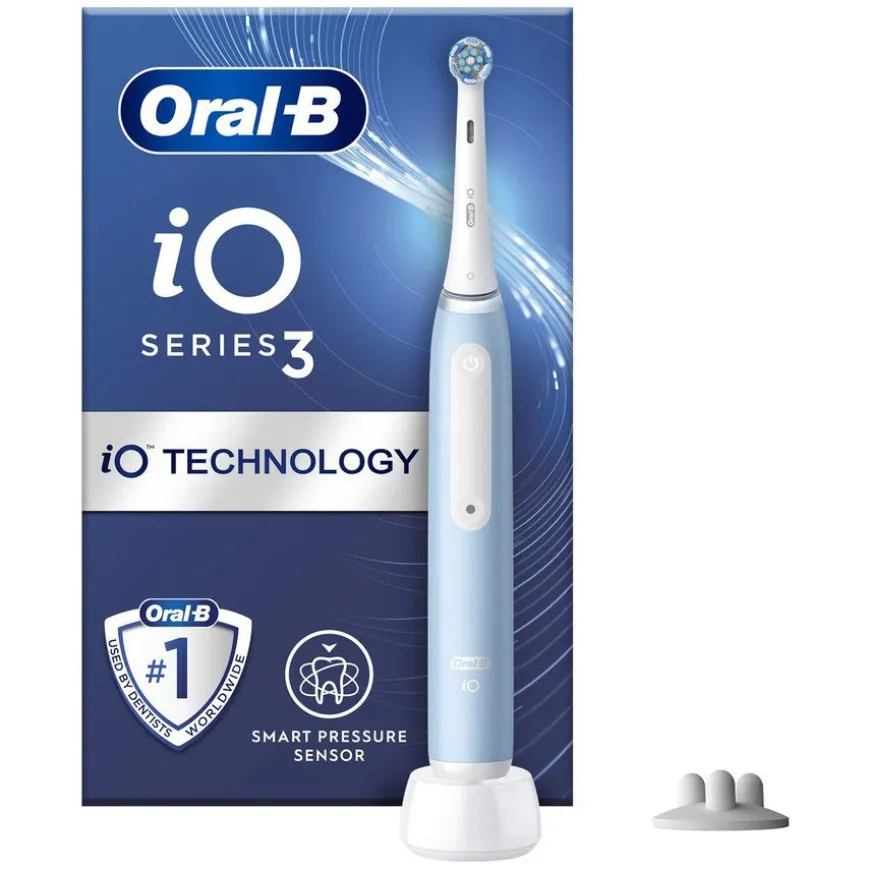 Oral-B iO 3S er en blå elektrisk tannbørste.