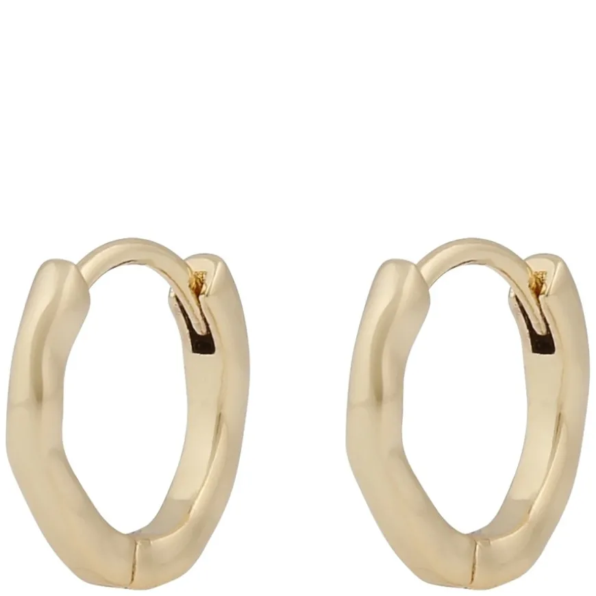 Jen Small Ring Earrings Plain Gold fra SNÖ Of Sweden er elegante hoops laget av gullbelagt messing. Øredobbene har et enkelt, men unikt design med en skinnende, uregelmessig overflate som tilfører et moderne preg. Perfekte for både hverdagsbruk og spesielle anledninger.
