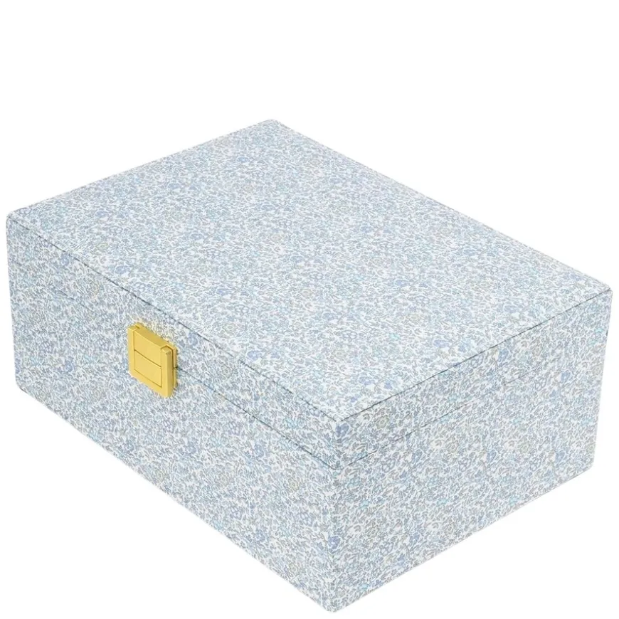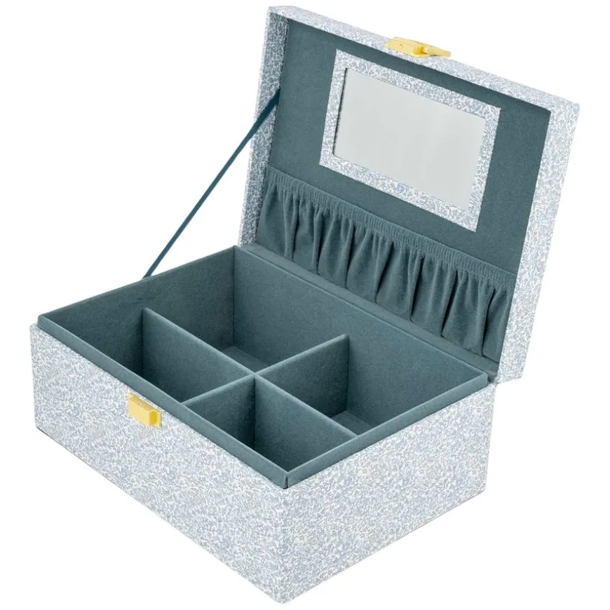 Jewelry Box Square MW Liberty fra Bon Dep er et vakkert og praktisk smykkeskrin designet for å holde smykkene dine trygge og organisert. Med solid konstruksjon gir det en luksuriøs oppbevaringsløsning for både hverdagsbruk og spesielle anledninger. Skrinet har god plass til ringer, øredobber, armbånd og kjeder, og det myke innvendige fôret beskytter smykkene mot riper og slitasje.