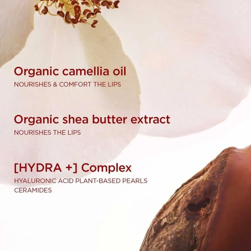Joli Rouge Velvet Lipstick er en høypigmentert leppestift med en elegant, matt finish som sitter i opptil 8 timer. Den kremete formelen gir en behagelig følelse på leppene, uten å tørke ut. Clarins sin [HYDRA +]-kompleks kombinerer plantebaserte hyaluronsyreperler og ceramider for langvarig fuktighet og komfort. Økologisk kameliaolje og økologisk sheasmør gir næring og pleie, slik at leppene forblir myke og smidige – også uten leppestift. Med 87 % hudpleiende formel og 82 % ingredienser av naturlig opprinnelse, gir den både skjønnhet og pleie i ett. Passer for alle som ønsker en intenst farget, pleiende og komfortabel leppestift med naturlig finish.