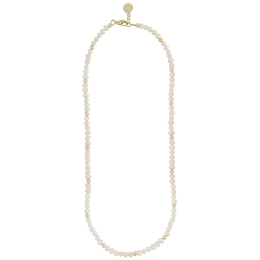 Julie Pearl Necklace er et perlesmykke som fanger essensen av delikat eleganse og tidløs skjønnhet. Smykket kombinerer subtile perler med et smalt kjede for å skape en sofistikert og allsidig stil.