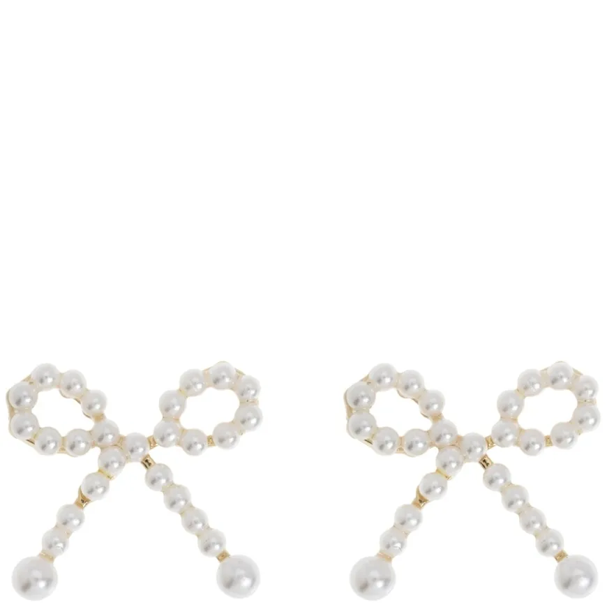 Juliette Cute Pearl Bow Stud Earrings er et par delikate øredobber med søte, små perlesløyfer, perfekte for å tilføre en feminin og coquette-stil. Med sine små imiterte perler og 18k gullbelegg gir de et lekent og elegant preg.