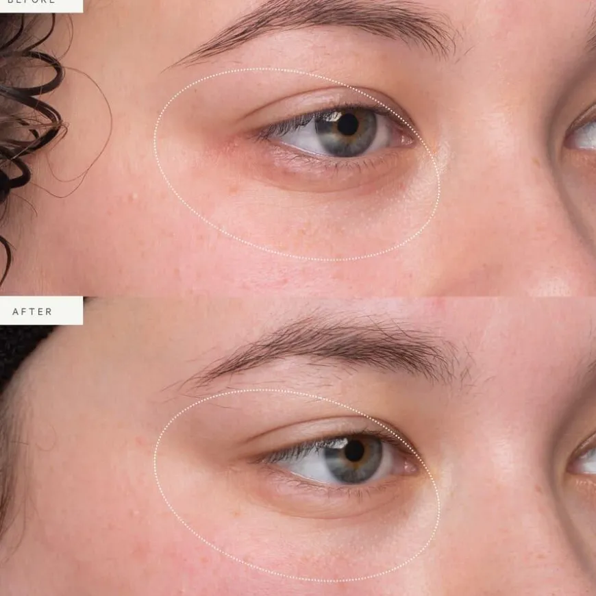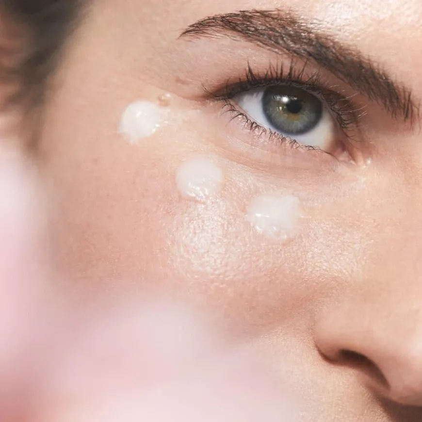 Påfør en liten mengde krem rundt øyet med ringfingeren.