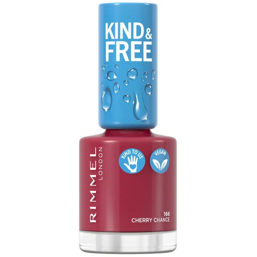 Kind & Free Clean Cosmetics Nail Polish er en neglelakk med en super skånsom formel. Neglelakken fra Rimmel gir glans og rik pigmentering. Laget med 75% bio-sourced ingredienser og 70% ingredienser av naturlig opprinnelse, inkludert potet og mais. Emballasjen er laget av resirkulerte materialer som er snillere mot miljøet. Denne neglelakken har en vegansk formel og børste, og er parfymefri. Tilgjengelig i 10 nyanser.