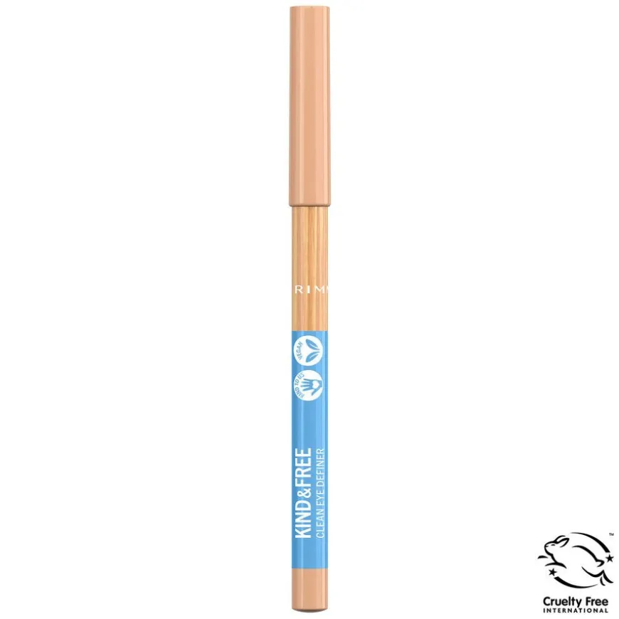 Rimmel Kind & Free Clean Eyeliner er en eyeliner-blyant som gir superrike, høyt fargepåvirkende linjer for å umiddelbart definere og forbedre øynene. Denne cruelty-free eyeliner-blyanten glir lett over øynene med en ultra-kremaktig og smøraktig tekstur. Den har en ren hudpleieformel som er 100% vegansk og emballasje som er laget av tre, sertifisert av Forest Stewardship Council (FSC). Tilgjengelig i 6 fantastiske og inspirerte nyanser.