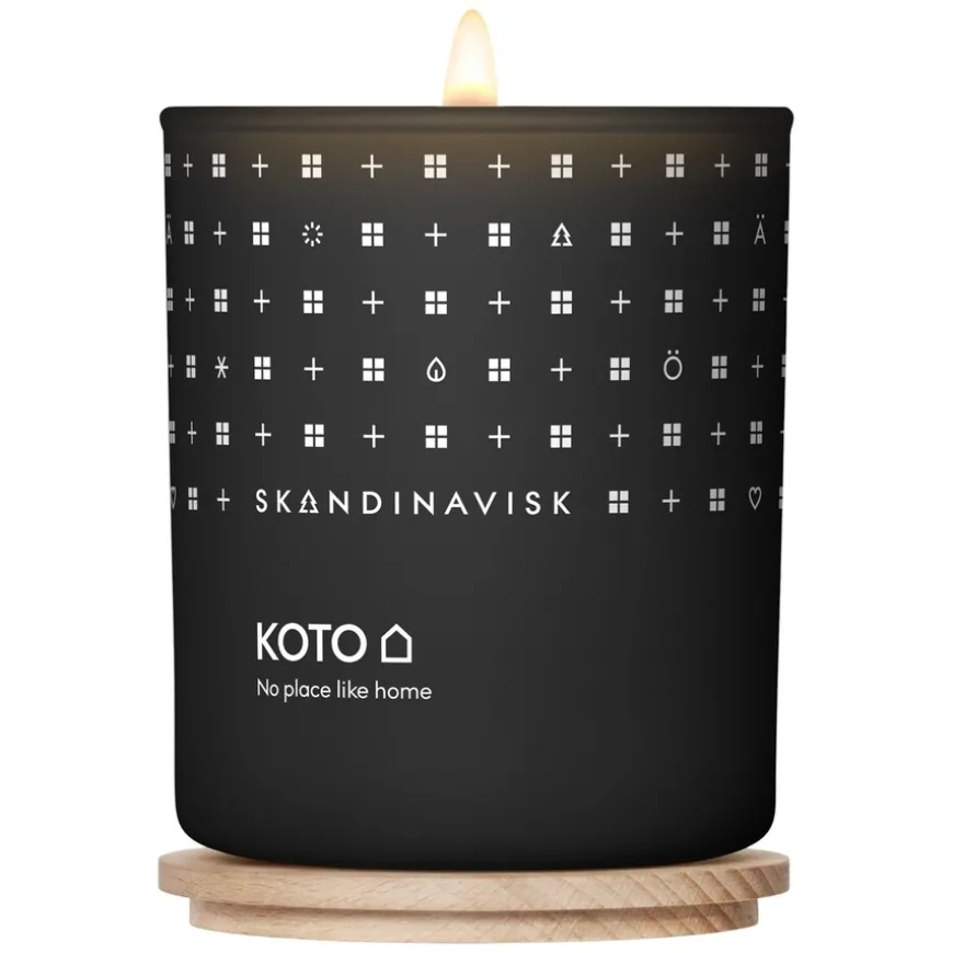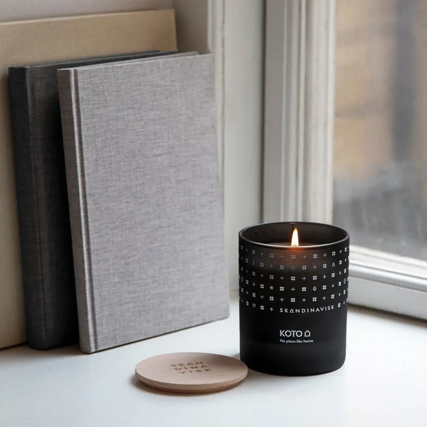 Skandinavisk KOTO Scented Candle med voks fra svensk rapsolje, som er bærekraftig dyrket og ikke-GMO, og blandet for å brenne jevnt og sakte med minimal miljøpåvirkning. Vegansk og ikke testet på dyr.
