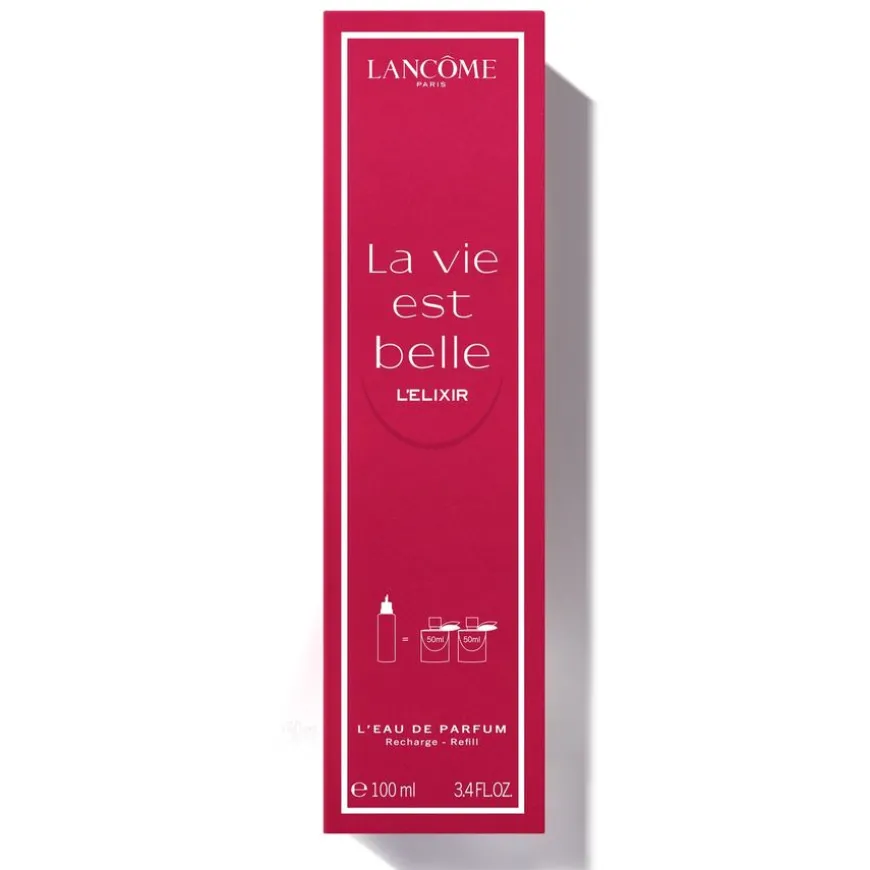 Ved å etterfylle din La Vie Est Belle L’Elixir-duft bidrar du til å spare 50 % av glassforbruket 46 % av plast- og pappforbruket*. La Vie Est Belle L’Elixir Refill kan ikke brukes alene, men kun med La Vie Est Belle L’Elixir-flasker på 30, 50, 100 og 150ml flasker, som er merket med at de kan etterfylles. * Ved bruk av 1 stk. La Vie Est Belle L’Elixir 50ml + 1 stk. La Vie Est Belle L’Elixir Refill 100ml vs. 3 stk. x La Vie Est Belle L’Elixir 50ml.