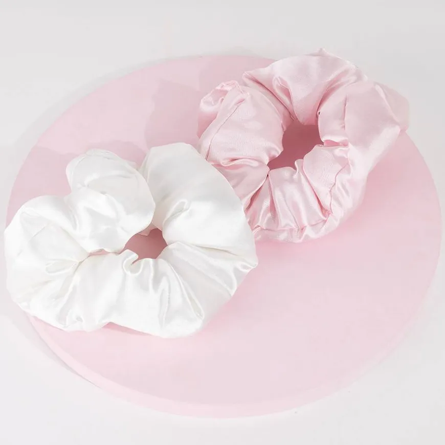 Brushworks Pink and White Large Cloud Scrunchies er ditt nyeste nattlige essensial, som tilbyr et ideelt alternativ til konvensjonelle elastikker. Det luksuriøse satengstoffet sørger for at håret ditt forblir uforstyrret under søvn, og lar deg våkne opp med glatt, frizz-fritt hår, klar til å ta fatt på dagen. Disse cloud scrunchiene er også skånsomme mot håret og er satengmyke, noe som forhindrer hekting eller trekking i håret. Deres satengmateriale er ikke-absorberende, og hjelper derfor med å bevare fuktigheten i håret, og reduserer hårbrekk. Si farvel til trekking da håret ditt er beskyttet i en myk, pute-lignende komfort! Satengmaterialet minimerer friksjon, reduserer risikoen for brudd og splittede ender sammenlignet med tradisjonelle hårstrikk. Som et flerbruks tilbehør tjener de som en elegant tillegg til din nattlige rutine, og lar deg sikre håret i en løs bolle eller hestehale mens du sover.