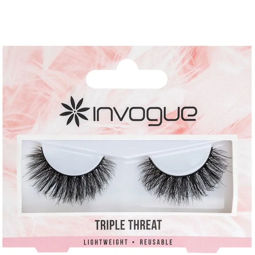 Triple Threat er løsvipper fra Invogue er designet for folk som ønsker den perfekte blandingen av volum, glatthet og lengde. Skap en imponerende look med Triple Threat Lashes fra Invogue. Disse vippene i falsk minkstil er delt i lag og passer for nesten alle øyeformer!