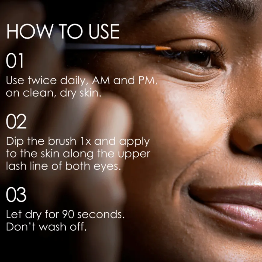 - Hyaluronsyre & Biotin: Fremmer sunt utseende vipper og reduserer utseendet og følelsen av tørre, skjøre vipper.