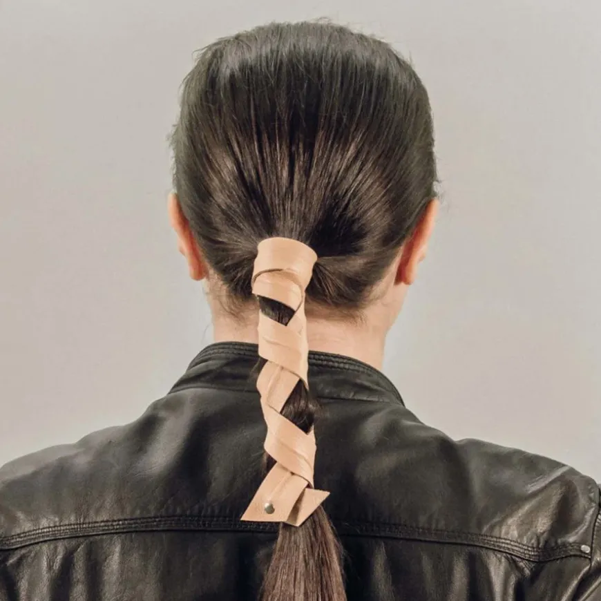 Leather Band Long Bendable er et kreativt skinnbånd med lang bøyning. Bare fantasien din kan begrense de forskjellige måtene å bruke den på! Vri den rundt hestehalen, «tutten» eller bruk den som hårbånd.