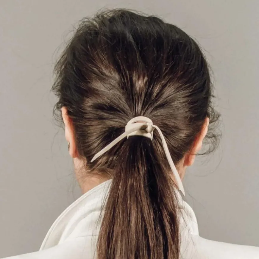 Leather Band Short Narrow er et kort smalt lærestrikk som er håndlaget i Italia i italiensk skinn av høy kvalitet. Skinnbåndet har et strikk festet til seg, dette gjør det enkelt å feste til håret ditt. Når du har festet hårbåndet, snurr du skinnet rundt hestehalen din, eller hvorfor ikke gjøre det til en sløyfe?