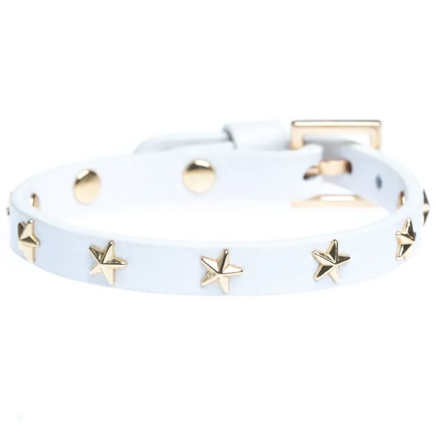 Leather Star Stud Bracelet Mini er et skinnarmbånd i ekte skinn med stjerne nagler. Justerbar størrelse.