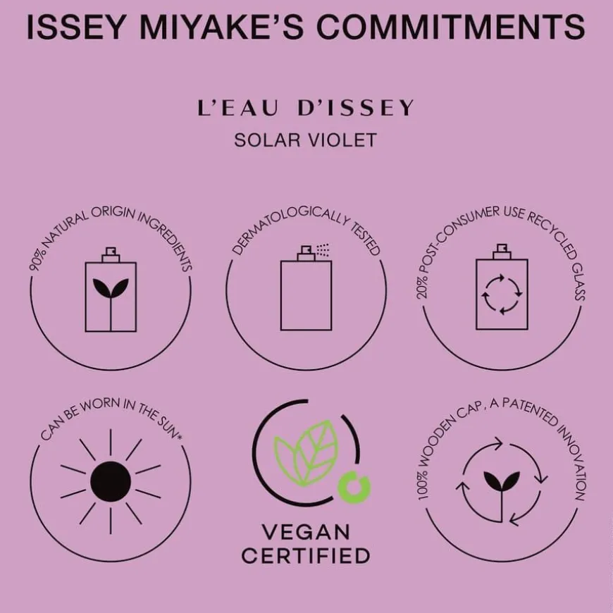 L’Eau D’Issey Solar Violet er den nye parfymen for kvinner fra Issey Miyake – en duft der vann møter materie i vårens lys. Skapt under solen, kombinerer den varme med friskhet, og delikatessen med lidenskap, for å skape en moderne fiolparfyme full av kontraster.