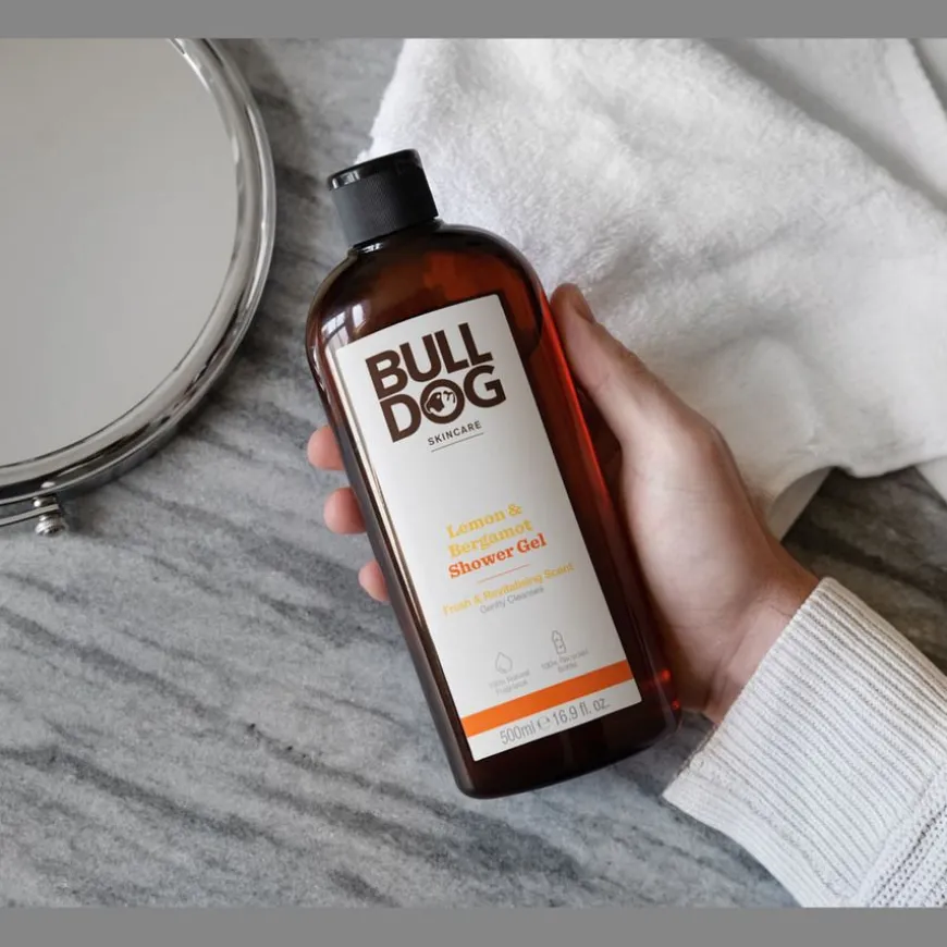 Bulldog Lemon & Bergamot Shower Gel er en dusjgel med en frisk duft av sitrus som gjør deg klar til å møte dagen. Dusjgelen kommer i en generøs flaske med 500ml som er lett å åpne og er laget av 100% gjenvunnet materiale. Produktet er vegansk og gjør rent uten å tørke ut huden. Denne solrike og oppfriskende eksplosjonen av sitrus løfter deg opp og gjør deg klar til dagen, uansett hvilket vær som venter ute! Gjør deg ren uten å tørke ut huden. Oppfriskende noter av appelsin, sitron, lime og bergamott kompletteres med basilikum, rosmarin og sedertre. Inneholder 100% naturlig duft. Inneholder ingen syntetiske fortykningsmidler.