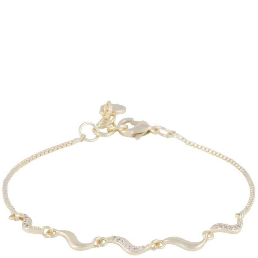 Line Bracelet fra Snö Of Sweden er et elegant armbånd med en mykt bølgende form og gnistrende detaljer. Dette smykket er laget av gullbelagt messing og kombinerer et moderne uttrykk med lett vekt for komfort hele dagen. Designet skaper et stilrent og feminint uttrykk som passer både alene og i lag med andre armbånd. Armbåndet har justerbar lengde for tilpasning til håndleddet.