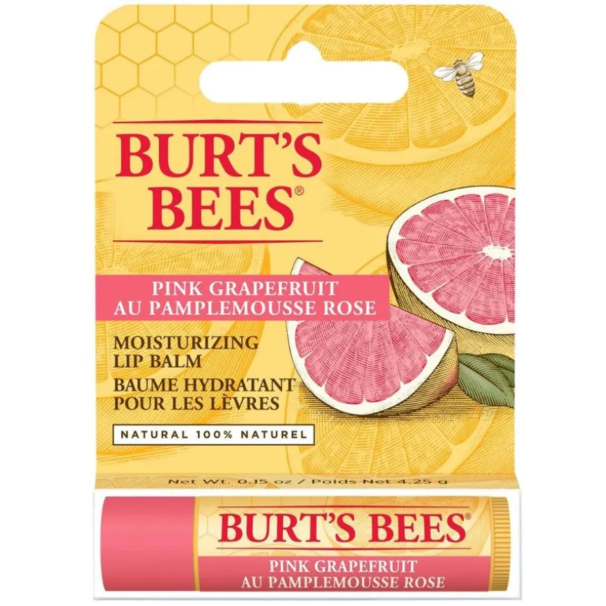 Burt´s Bees Pink Grapefruit er en 100 % naturlig leppepomade med nærende og pleiende grapefruktolje, bivoks og fruktekstrakter. Beskytter, mykgjør og pleier tørre og såre lepper. Rik på fruktekstrakter, C & E vitamin, kokos- og solsikkeolje, samt bivoks som virker pleiende og mykgjørende. Leppepomaden gir leppene en deilig duft av frisk grapefrukt. 100 % naturlig formula, praktisk resirkulerbar tube, lett å påføre, føles myk men ikke klissete – denne leppepomaden blir raskt en favoritt!