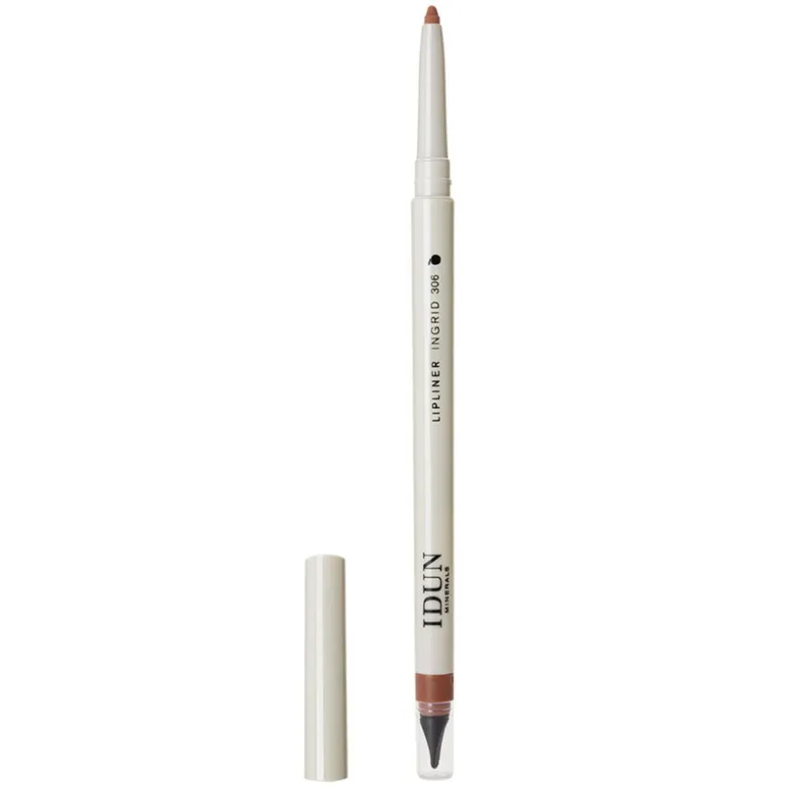 IDUN Minerals Lipliner er en vegansk leppepenn med kremet tekstur som gir en silkemyk og matt finish. Beriket med pleiende jojobaolje og kokosolje, holder den leppene fuktige og myke under bruk. Den uttrekkbare liplineren er designet med en innebygd spisser for presis påføring og et viskelær for jevne overganger. Høyrensede mineraler sikrer en myk, men nøyaktig linje som fremhever leppekonturene og holder leppestiften på plass. Denne parfymefrie og dermatologisk testede liplineren passer for alle hudtyper, inkludert sensitiv hud.