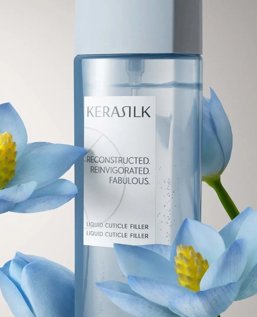 Liquid Cuticle Filler er en varmeaktivert spray som gir en intens og langvarig strukturell gjenoppbygging av håret. Sprayen gjenoppbygger og optimaliserer håroverflaten, for en langvarig strukturell gjenoppbygging av skjellaget og et hår som ser sunt ut med naturlig glans. Håret blir sterkere, mer livfullt og mer motstandsdyktig mot daglige stressfaktorer. Med varmebeskyttelse. Den har en 100 % vegansk formel og er beriket med Biomimetic Silk og blå lotus estrakt.