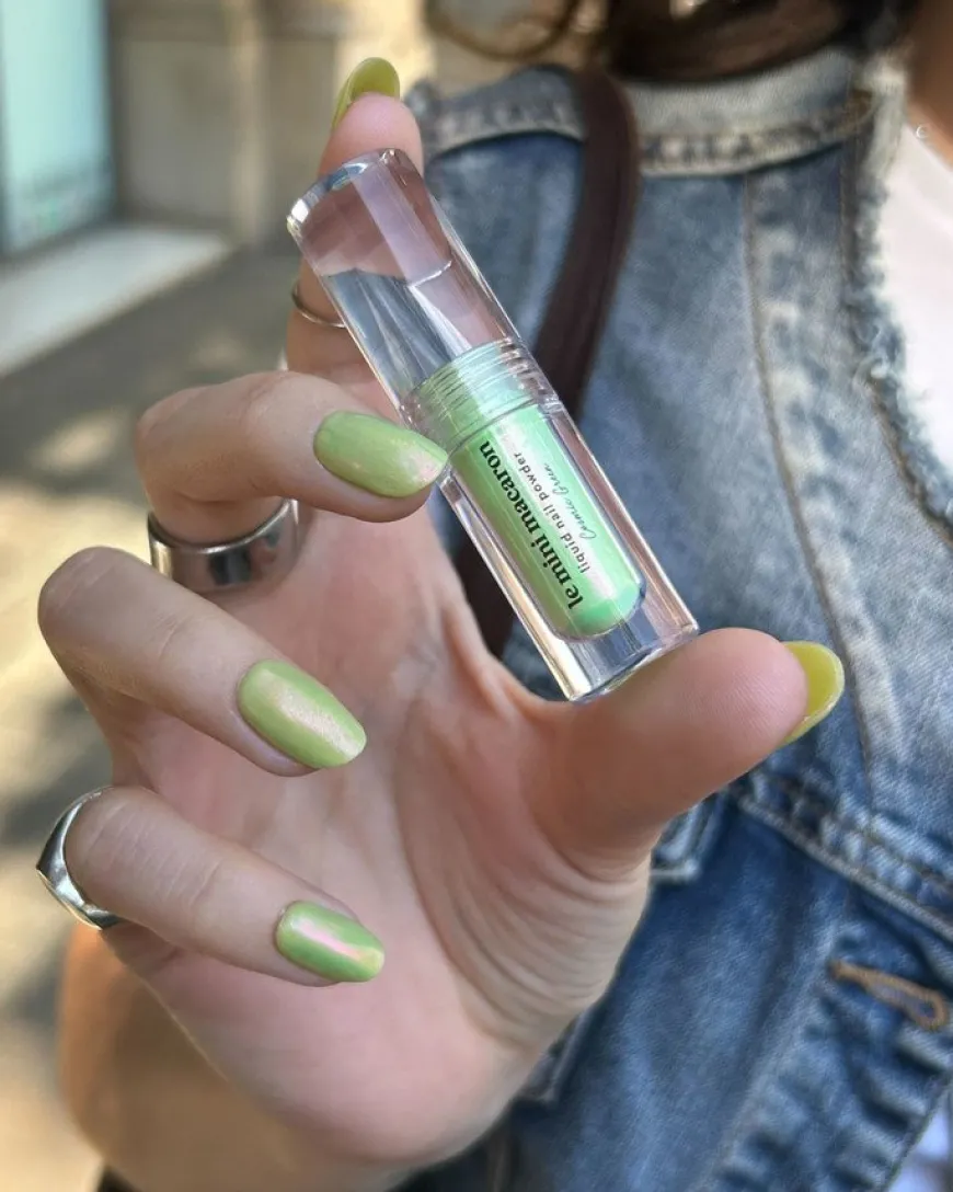 Få fortryllende, utenomjordiske negler med Cosmic Green Liquid Nail Powder. Denne gressgrønne flytende-til-pulver-formelen er enkel å påføre og forsegles med en gelé-topcoat. De kromatiske resultatene vil endre seg avhengig av basefargen på gelélakken.