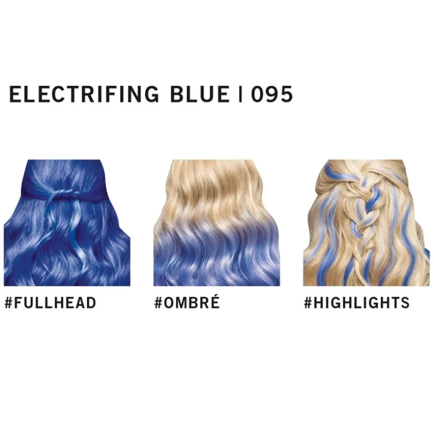 Live Ultra Bright #95 Electric Blue er en semi-permanent hårfarge. Er du på utkikk etter et elektrisk uttrykk? Med denne intense blåfargen får du garantert andre til å snu seg etter deg! Dersom du ønsker en mer dus nyanse, kan du slev blande en drømmende pastellfarge ved å blande fargen med balsamen i pakken.Holder i 12-15 vask. Dristig eller pastell? Skap din egen look med Live Ultra Bright #95 Blå.
