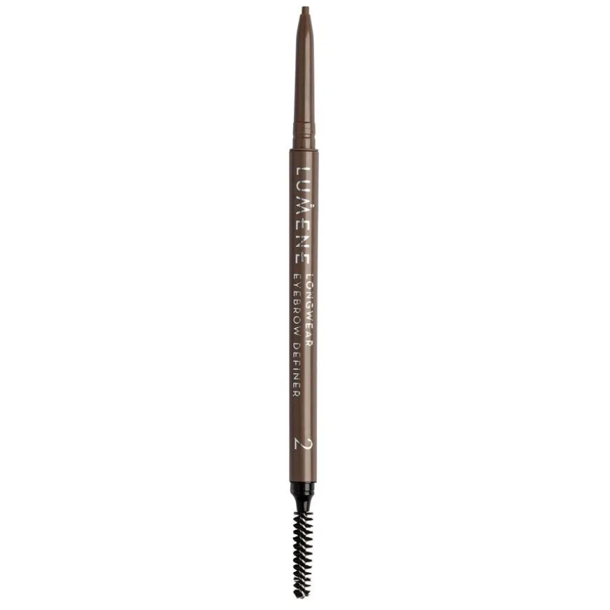 Longwear Eyebrow Definerer en duftfri automatisk øyenbrynsblyant med en ultra-smal spiss for vakre, presist definerte øyenbryn. Den holdbare sammensetningen gir en naturlig matt finish og hjelper deg med å holde øyenbrynene veldefinerte gjennom dagen. Den myke, ultratynne spissen fyller øyenbrynene nøyaktig og naturlig, og trenger ikke å spisses. Den lille innebygde spooliebørsten er ideell for å forme øyenbrynene og gjøre fargen uskarp.