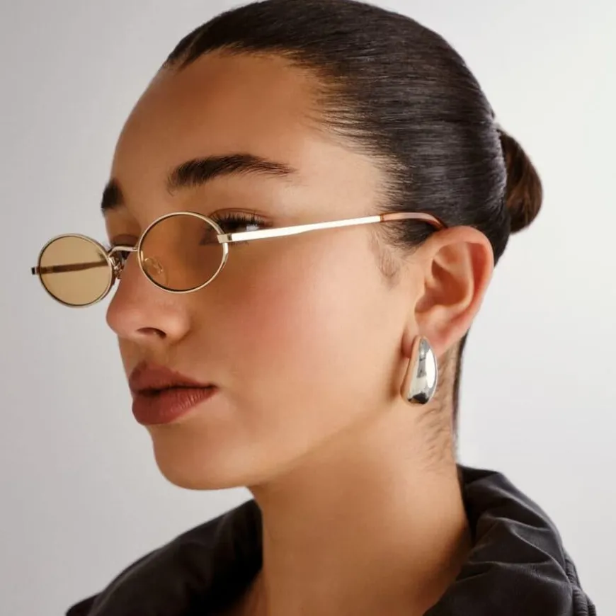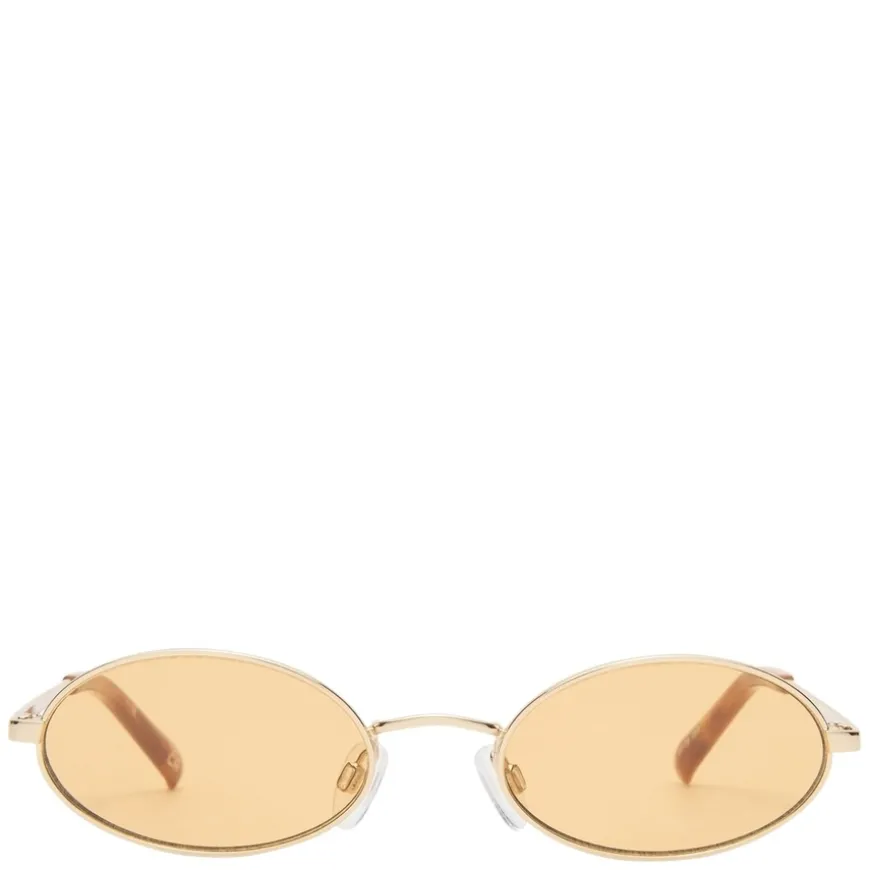 Le Specs Love Train Gold With Mustard Mono Lens er en tidløs oval solbrille med raffinerte detaljer og en smal passform som gir et minimalistisk og elegant uttrykk. Med skreddersydde Le Specs metalldetaljer på stengene, kombinerer denne brillen klassisk stil med moderne finesse.