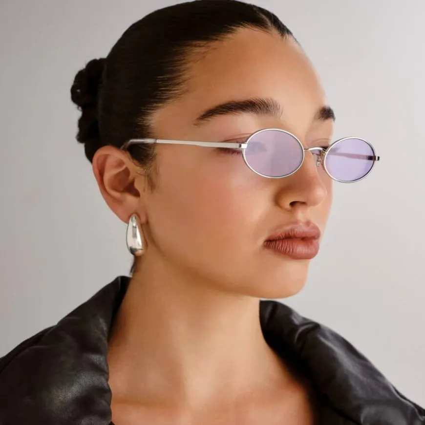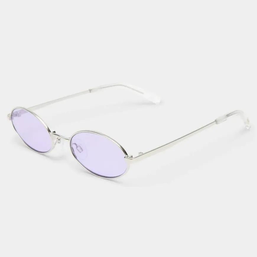 Le Specs Love Train Silver With Lilac Tint Lens er en tidløs oval solbrille med raffinerte detaljer og en smal passform som gir et minimalistisk og elegant uttrykk. Med skreddersydde Le Specs metalldetaljer på stengene, kombinerer denne brillen klassisk stil med moderne finesse.