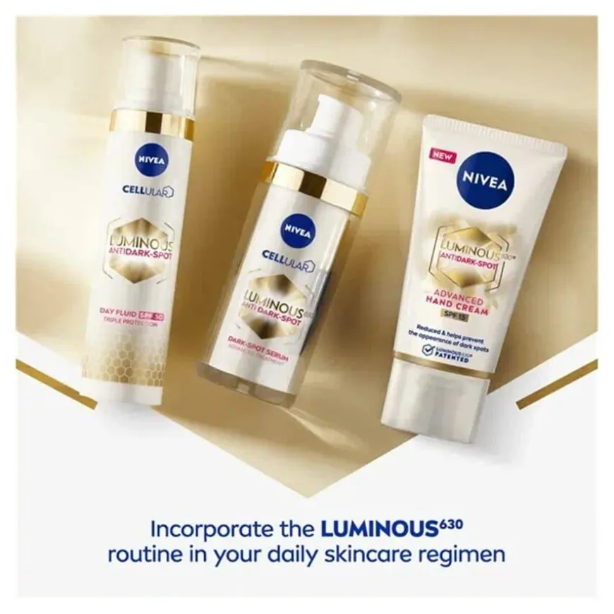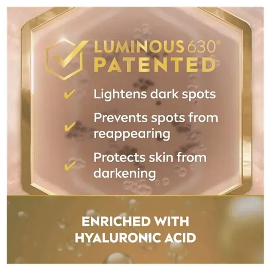 Luminous 630 Anti Dark-Spot Hand Cream er en avansert håndkrem som effektivt reduserer mørke pigmentflekker og forhindrer nye i å oppstå. Den inneholder LUMINOUS630-teknologi og hyaluronsyre, som gir intensiv fuktighet i opptil 24 timer og etterlater hendene myke og glatte. SPF15 beskytter mot solindusert mørkere hud og fotoaldring. Kremen bidrar også til å redusere fine linjer og rynker uten å etterlate en fet eller klissete følelse. Hudkompatibilitet er dermatologisk godkjent.