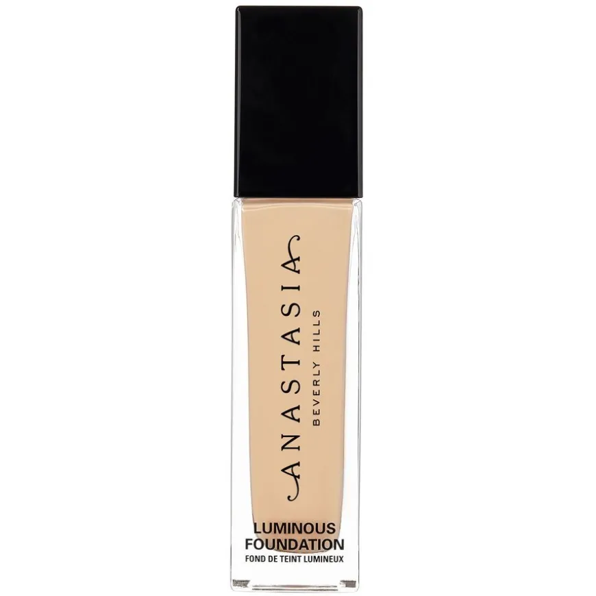 Luminous Foundation fra Anastasia Beverly Hills er en vannfast, flytende foundation som gir huden en naturlig, strålende glød. En formula med holdbar, medium dekkevne, som likevel føles lett og gir et friskt og naturlig resultat. Dette er produktet du har ventet på. Luminous Foundation ser fantastisk ut alene, så det er ikke nødvendig å bruke pudder. Luminous Foundation finnes i flere naturlige nyanser og dekker alle feil i huden (også misfarging og ujevnheter) uten å kladde eller skjule hudens naturlige glød. Den er enkel å påføre og gir en perfekt hud uten flashback eller oksidering. Gir huden en frisk, strålende glød med lett og naturlig følelse.