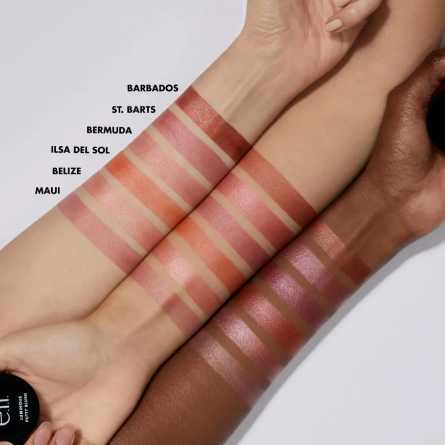 Luminous Putty Blush gir en vakker, glødende farge til kinnene med en unik putty-to-powder-formel. Den høypigmenterte, kremaktige blushen smelter inn i huden og forvandles til en lysende pudderfinish. Beriket med arganolje og vitamin E, gir den ekstra fuktighet og næring for en sunn og strålende hudtone. Den lette, byggbare formelen gjør det enkelt å tilpasse intensiteten, enten du ønsker en subtil glød eller en mer markert look. For en feilfri påføring, bruk den med e.l.f. Putty Blush Brush.