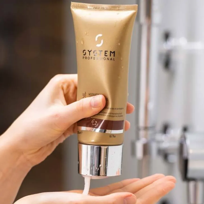 System Professional Luxe Oil Keratin Conditioning Cream vil tilføre daglig mykgjørende pleie som beskytter hårets keratin uten å tynge.