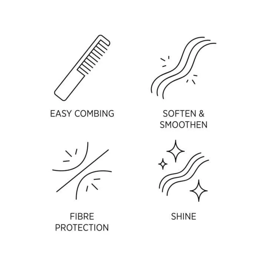 - Gir en luksuriøs følelse og gjør håret lett å gre.
