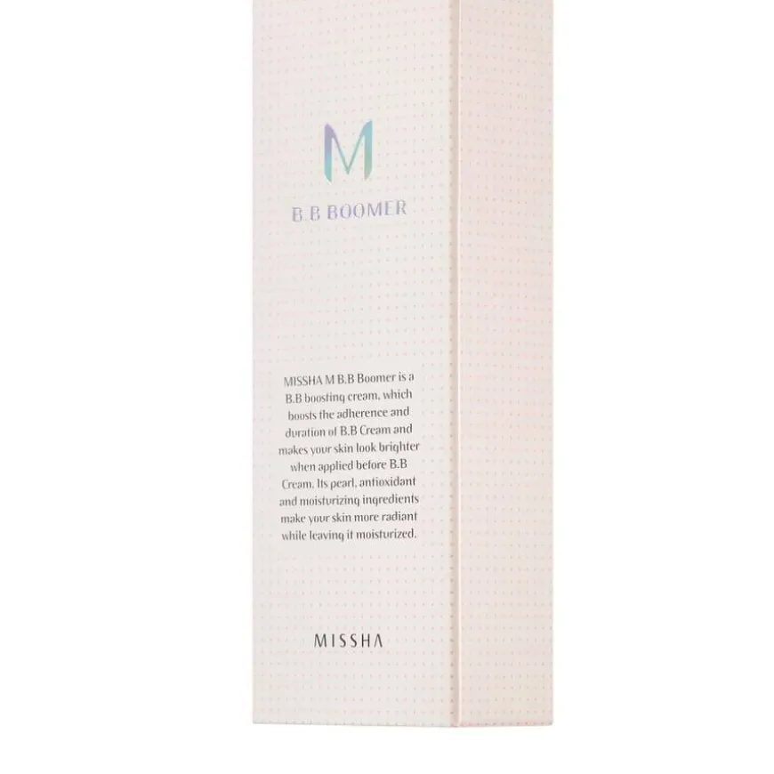 M BB Boomer er en BB-boosting-krem som forbedrer festeevnen og varigheten til BB-kremen, samtidig som den gir en lysere og mer strålende hudtone. Den inneholder små rosa perlepartikler som jevner ut huden og gir en myk, glødende finish. Formulert med Moringa Oleifera Seed Oil, Mannan og Squalane, danner den en fuktighetsbevarende film som holder sminken hydrert hele dagen. I tillegg er den beriket med adenosin og niacinamid, som har oppstrammende og lysnende egenskaper, og hjelper med å redusere rynker og mørke områder.