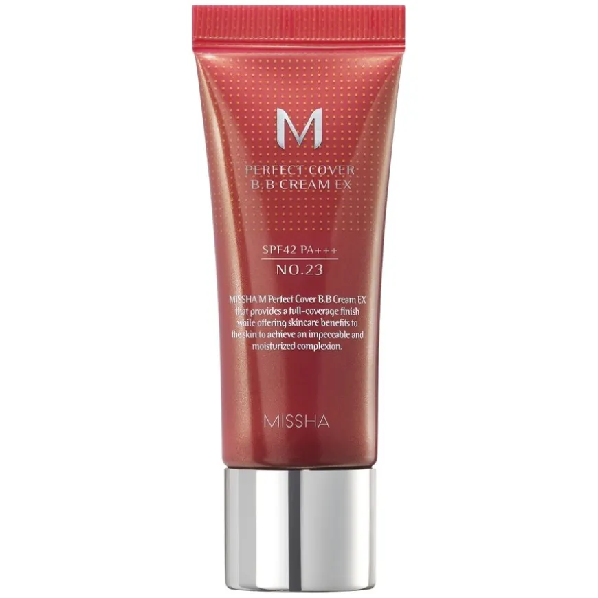 M Perfect Cover BB Cream SPF42 PA+++ er en multifunksjonell BB-krem som kombinerer hudpleie og sminke. Den gir en jevn og naturlig dekning, samtidig som den bidrar til å lysne hudtonen og redusere synlige rynker. Formulert med effektive anti-aging og lysnende ingredienser, hjelper den med å forbedre hudens utseende over tid. Med høy solbeskyttelse (SPF42 PA+++) beskytter den mot skadelige UV-stråler, slik at du ikke trenger ekstra solkrem.