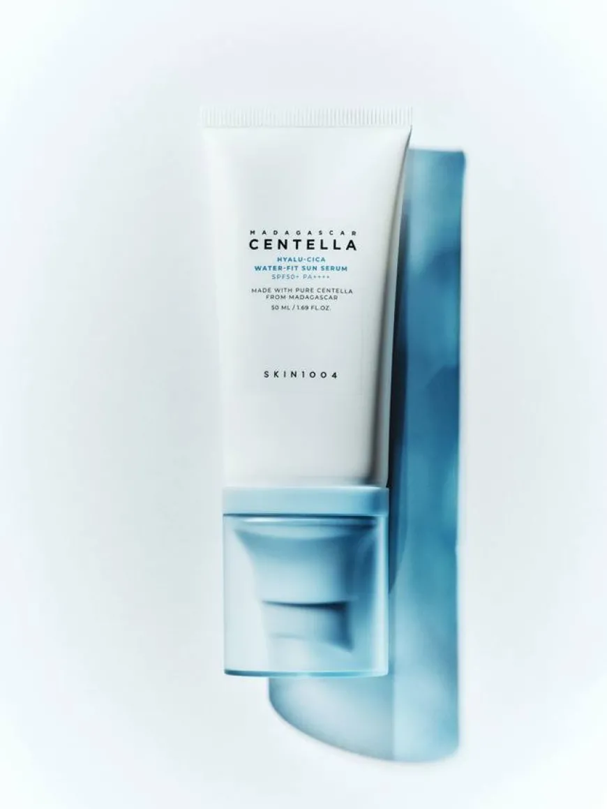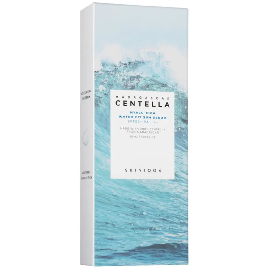 Madagascar Centella Hyalu-Cica Water-Fit Sun Serum er en fysisk (mineralsk) solkrem med effektiv UVA / UVB-beskyttelse av SPF 50 og PA ++++. Ultralett solkrem med en ikke-klebrig og serumlignende tekstur gir en pustende og duggfrisk finish uten hvitt skjær. Solkremen bryter stereotyper av tørre og stive solkremer, den har lett fuktighetsgivende tekstur som smøres i ansiktet med rask absorpsjon. SKIN1004s unike Hyalu-Cica-formel gir dyp fuktighetsgivende og beroligende effekt, med en rask absorpsjon i huden. Sertifisert som en multifunksjonell kosmetikk for tre forskjellige egenskaper: lysere hud / rynkereduksjon / UV-beskyttelse av Ministry of Food and Drug Safety.