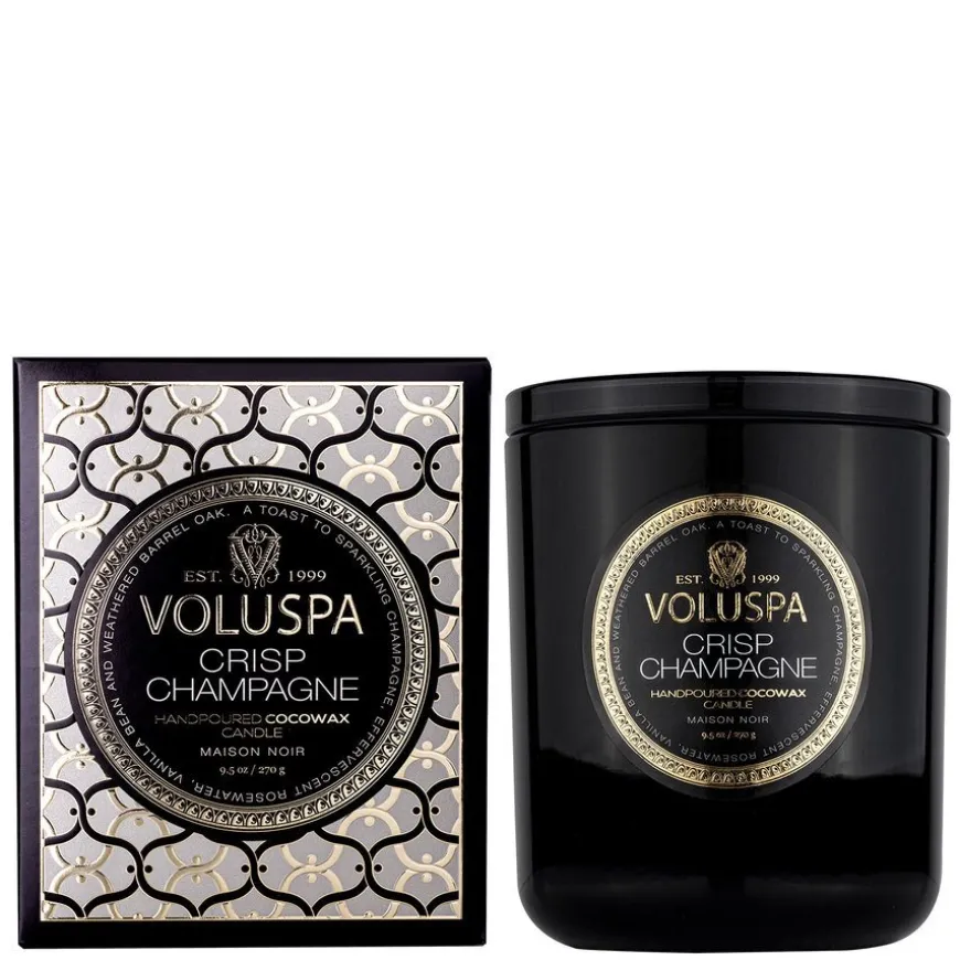 Crisp Champagne Classic Boxed Candle dufter av sprudlende tørr champagne blandet med vanilje og eik.