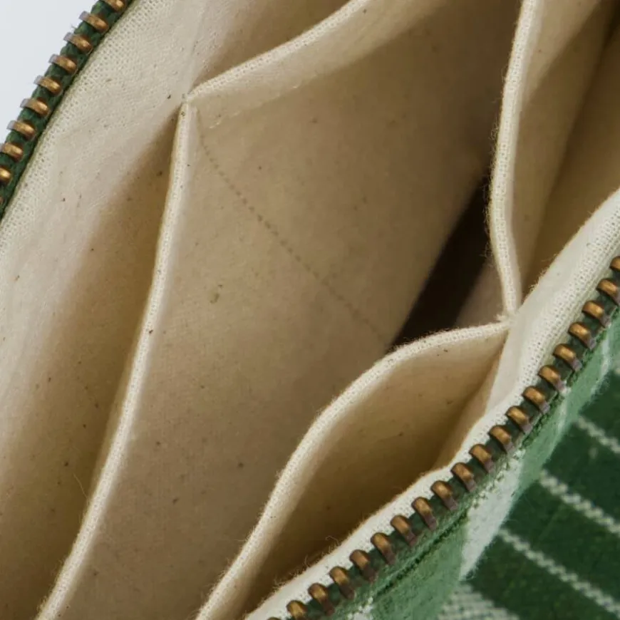 Makeup Pouch Dark Olive er en stilfull og funksjonell sminkepung laget av Oeko-Tex-sertifisert bomull. Den myke kvaliteten og den dype, mørke olivenfargen gir et tidløst og jordnært uttrykk. Glidelåslukkingen sørger for sikker oppbevaring av sminke og små nødvendigheter, enten du er hjemme eller på reise. Et perfekt tilbehør for deg som ønsker en kombinasjon av praktisk design og estetisk eleganse.