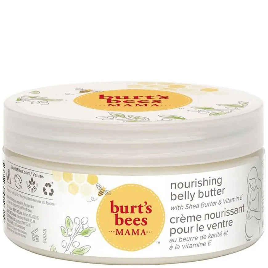 Burt´s Bees Mama Nourishing Belly Butter er en nærende og fuktgivende krem til mors voksende mage. En deilig «body butter» for myk og smidig hud. Kremen er beriket med naturlige ingredienser som shea- og kakaosmør, og oljer fra solsikke, mandel og kokos. Inneholder E vitamin som beskytter og styrker hudbarrieren. Kremen trekker raskt inn og kan bidra til å forebygge tørr og kløende hud med sprekkdannelse. Uten fremtredende duft.