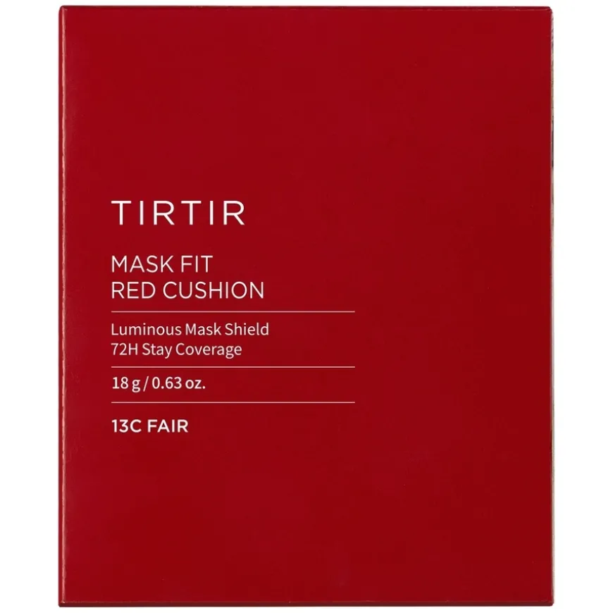 TIRTIR Mask Fit Red Cushion er en innovativ cushion-foundation kjent for sin lette, men langvarige formel med opptil 72-timers holdbarhet. Den gir en feilfri, halvmatte finish som kan bygges opp for ønsket dekkevne. Formelen skjuler effektivt rødhet, urenheter og mørke ringer, samtidig som den føles lett og pustende på huden. Inneholder hibiskus- og rød propolis-ekstrakter som bidrar til å forbedre hudens elastisitet og gi en naturlig, ungdommelig glød. Den unike eggformede puffen sikrer presis påføring og dekker alle ansiktets konturer, inkludert rundt nese, øyne og munn. Passer for alle hudtyper.