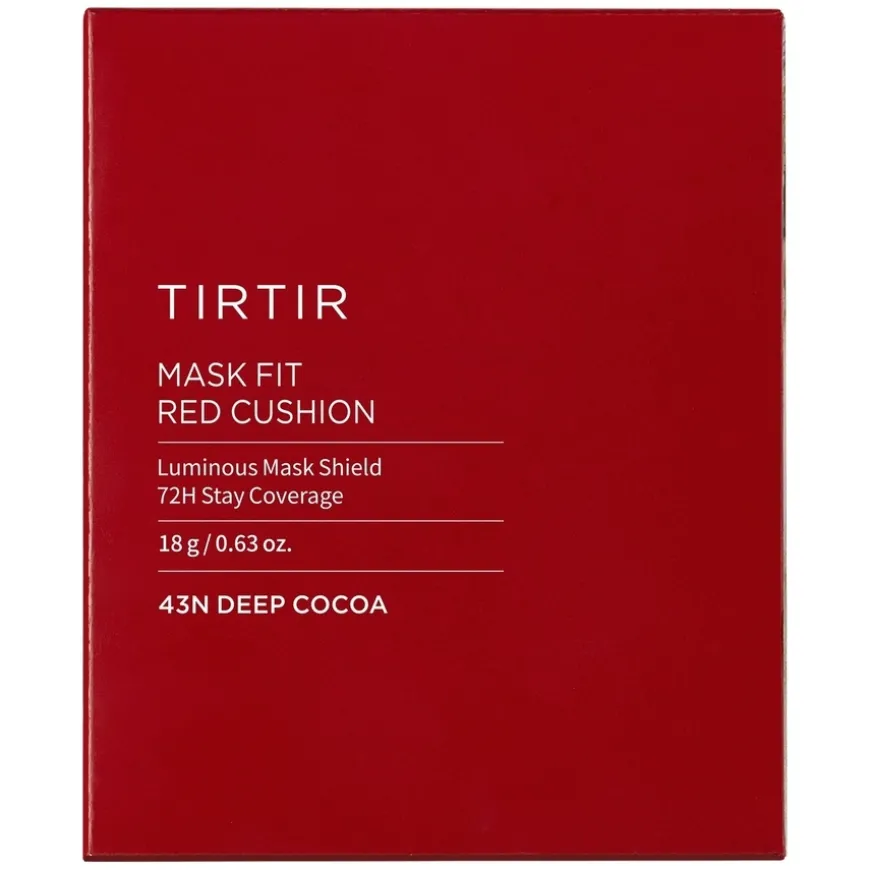 TIRTIR Mask Fit Red Cushion er en innovativ cushion-foundation kjent for sin lette, men langvarige formel med opptil 72-timers holdbarhet. Den gir en feilfri, halvmatte finish som kan bygges opp for ønsket dekkevne. Formelen skjuler effektivt rødhet, urenheter og mørke ringer, samtidig som den føles lett og pustende på huden. Inneholder hibiskus- og rød propolis-ekstrakter som bidrar til å forbedre hudens elastisitet og gi en naturlig, ungdommelig glød. Den unike eggformede puffen sikrer presis påføring og dekker alle ansiktets konturer, inkludert rundt nese, øyne og munn. Passer for alle hudtyper.